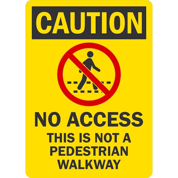 No Access, This Is Not A Pedestrian Walkway, 5x7, Engineer Grade, Yellow