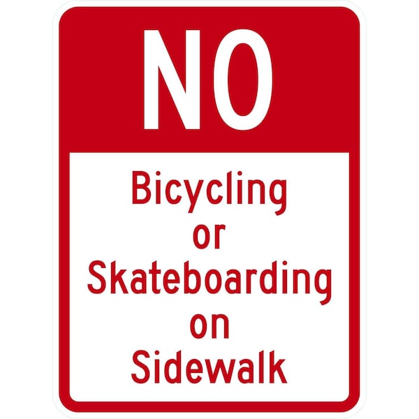 No Bicycle Or Skateboarding On Sidewalk, 18x24, Non-Reflective, White