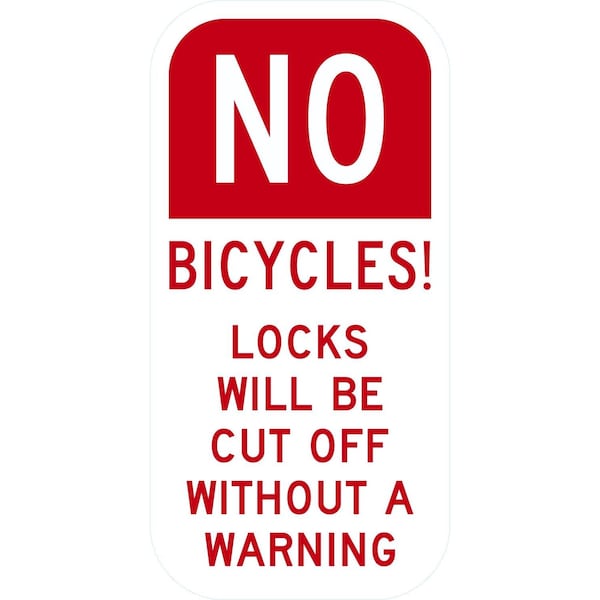 No Bicycles Locks Will Be Cut Off Without Warning, 6x12, Non-Reflective, White