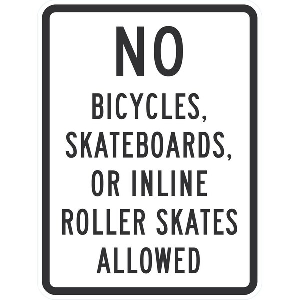 No Bicycles, Skateboards Or Inline Roller Skates, 18x24, Non-Reflective, White