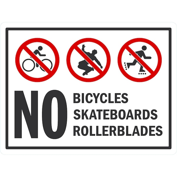 No Bicycles Skateboards Rollerblades (W/Sym), 24x18, Diamond Grade, White