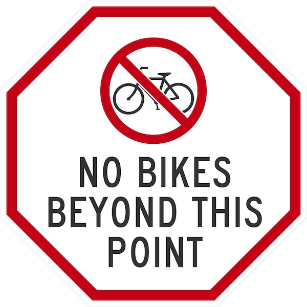 No Bikes Beyond This Point (w/graphic), 24x24, Engineer Grade, White