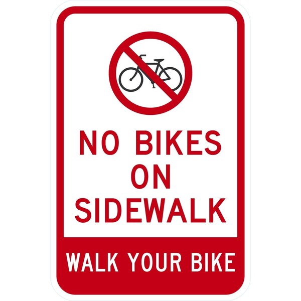 No Bikes On Sidewalk Walk Your Bike (w/sym), 12x18, Engineer Grade, White