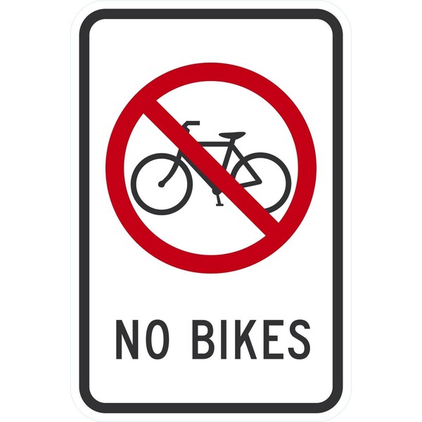 No Bikes (w/sym), 12x18, Non-Reflective, White