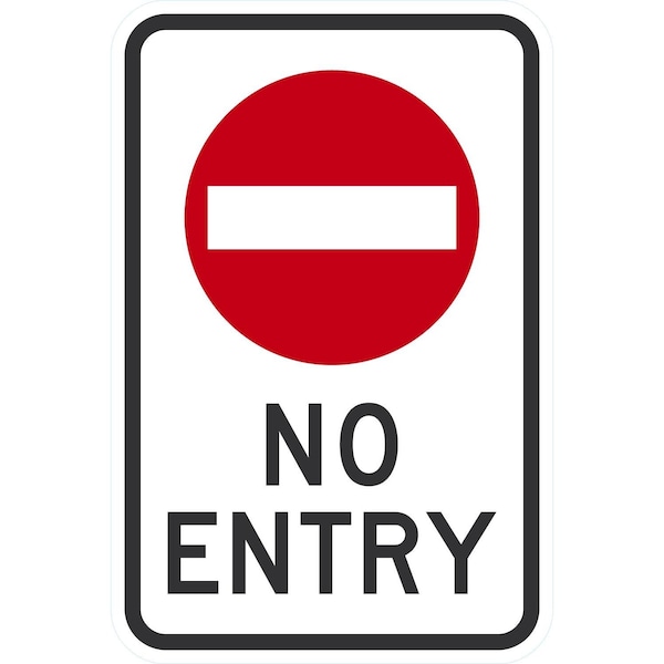 No Entry (w/sym), 12x18, Engineer Grade, White