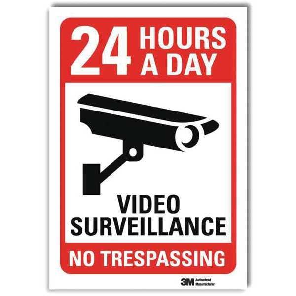 No Header, 24 Hours A Day Video Surveillance No Trespassing, 7 in W x 10 in H, Horizontal Rectangle
