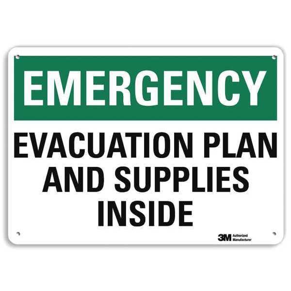 Emergency Exit Sign, Horizontal Rectangle, Number of Printed Sides 1, English, Sign Format Traditional OSHA, Sign Legend Evacuation Plan And Supplies Inside, Sign Legend Background Color White, Sign Legend Style Text