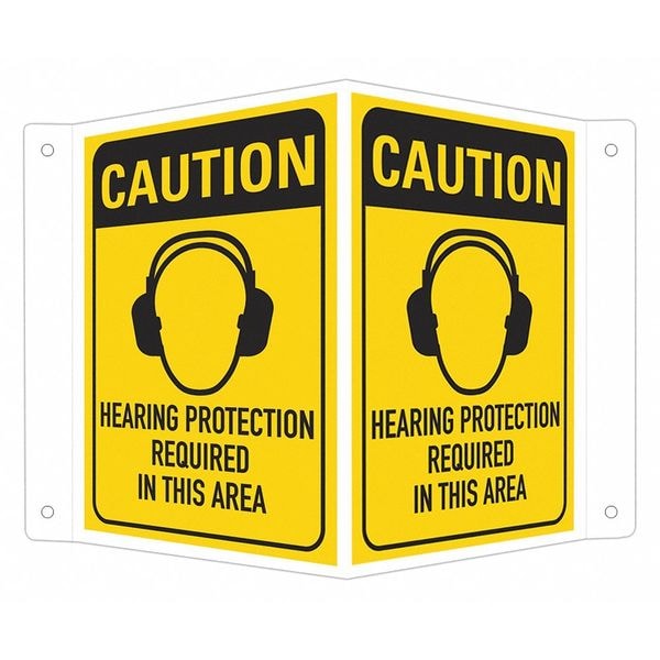 No Header, Hearing Protection Required In This Area, 7 1/2 in W x 6 in H, V-Shape Projection