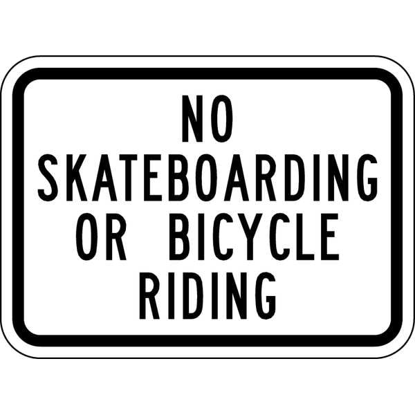 Traffic Sign, Horizontal Rectangle, Number of Printed Sides 1, English, Sign Legend No Skateboarding Or Bicycle Riding, Sign Legend Background Color White, Sign Legend Style Text