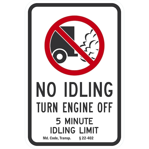 No Idling, Turn Engine Off, 5 Minute Idling Limit, Md., 12x18, Non-Reflective, White