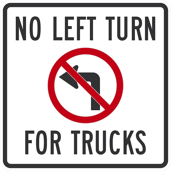No Left Turn For Trucks with Graphic, 30x30, Diamond Grade, White