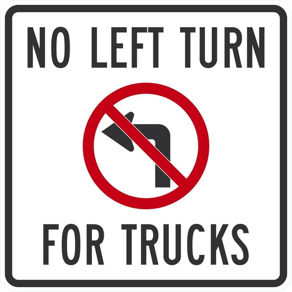 No Left Turn (w/sym) For Trucks, 24x24, Diamond Grade, White