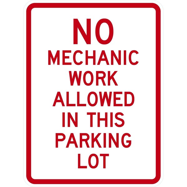 No Mechanic Work Allowed In This Parking Lot, 18x24, Engineer Grade, White