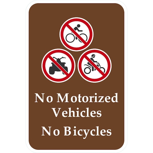 No Motorized Vehicles, No Bicycles (with Graphic), 12x18, Engineer Grade, White