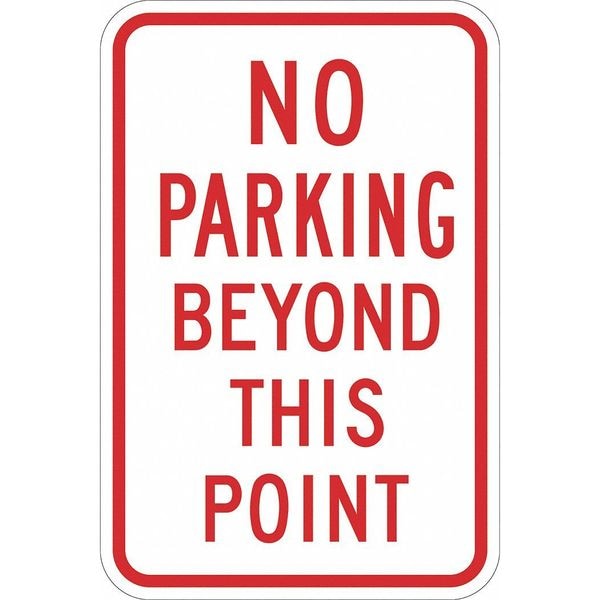 No Parking Beyond This Point Parking Sign, Height 18 in, Width 12 in, Sign Material Aluminum, Sign Mounting Style Mounting Holes, Printed Language English, Sign Shape Vertical Rectangle