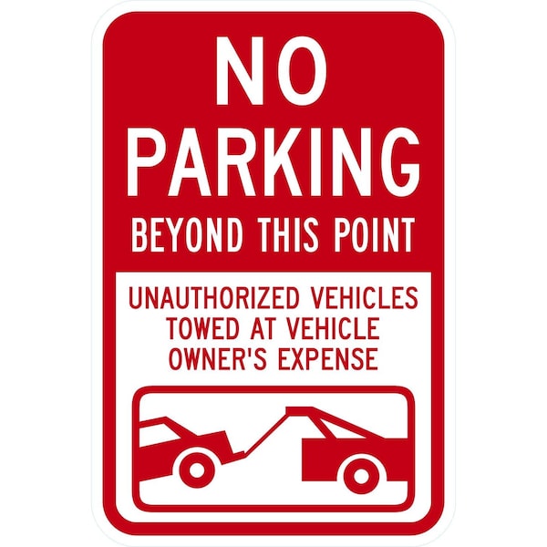 No Parking Beyond This Point Unauthorized Vehicles, 12x18, High Intensity Prismatic, White