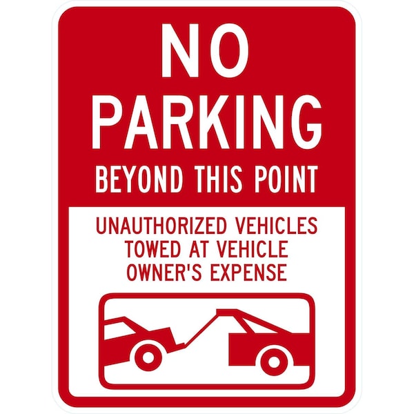 No Parking Beyond This Point Unauthorized Vehicles, 18x24, High Intensity Prismatic, White