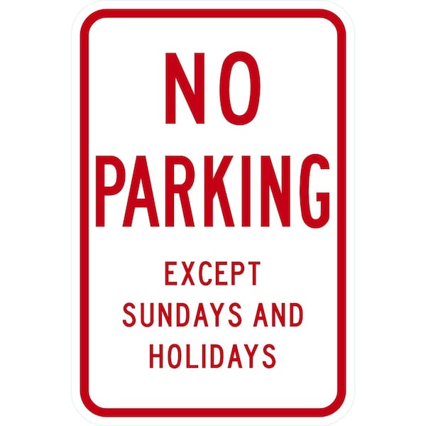 No Parking Except Sundays and Holidays, 12x18, Engineer Grade, White