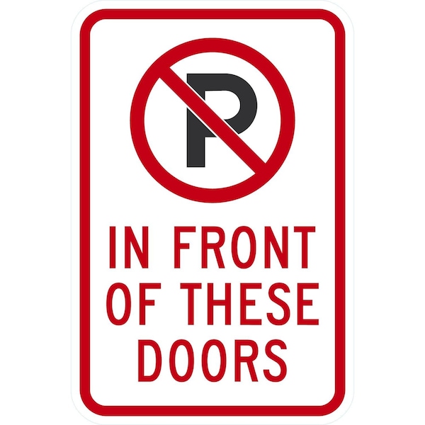 No Parking In Front Of These Doors with Graphic, 12x18, Engineer Grade, White