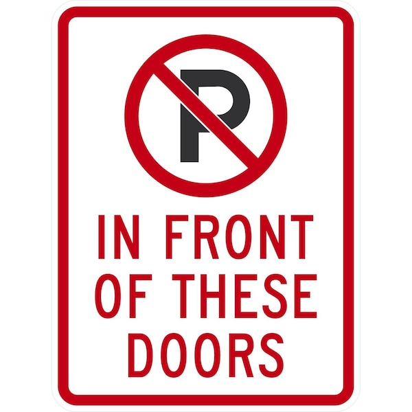 No Parking In Front Of These Doors with Graphic, 18x24, Engineer Grade, White