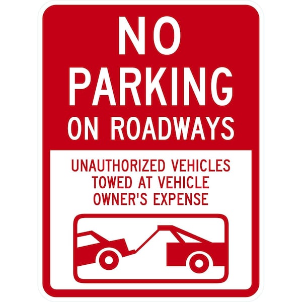No Parking on Roadways Unauthorized Vehicles Towed At, 18x24, Engineer Grade, White