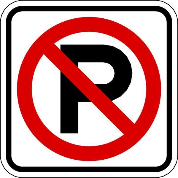 No Parking Parking Sign, Height 24 in, Width 24 in, Sign Material Aluminum, Sign Mounting Style Mounting Holes, Printed Language No Text, Sign Shape Square