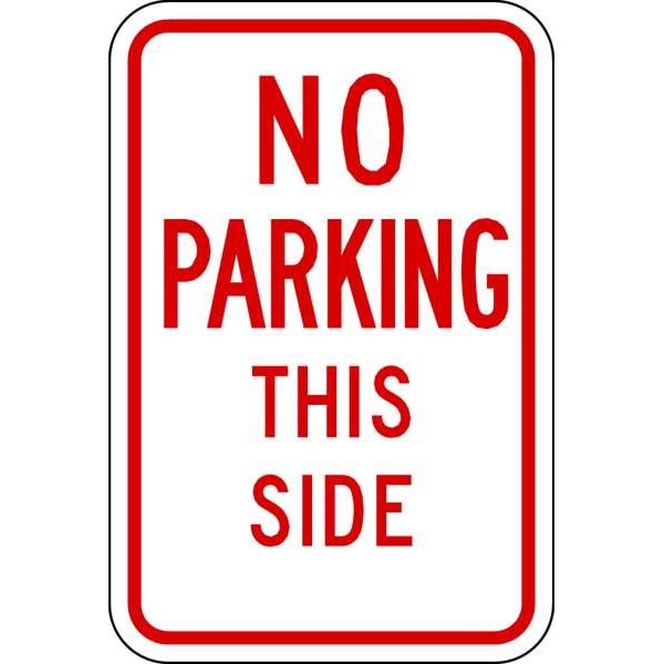 No Parking This Side Parking Sign, Height 18 in, Width 12 in, Sign Material Aluminum, Sign Mounting Style Mounting Holes, Printed Language English, Sign Shape Vertical Rectangle