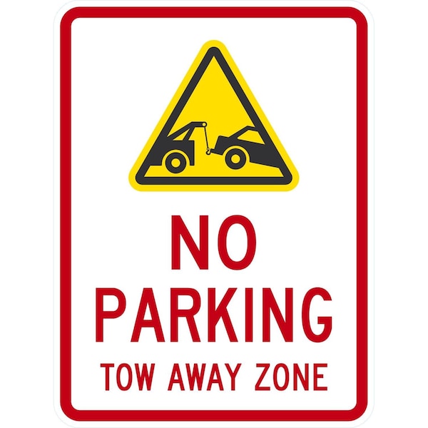 No Parking Tow Away Zone with Graphic, 18x24, Engineer Grade, White