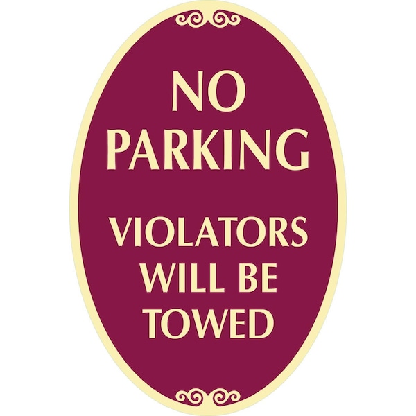 No Parking Violators Will Be Towed, 12x18, Engineer Grade, Burgundy
