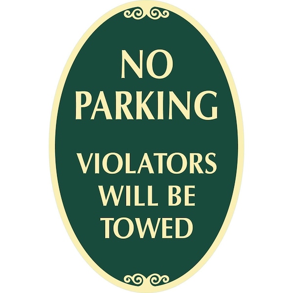 No Parking Violators Will Be Towed, 12x18, Non-Reflective, Dark Green