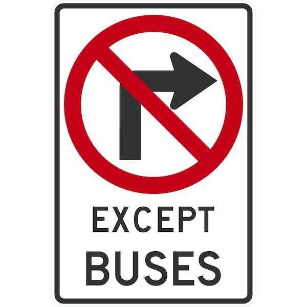 No Right Turn Except Buses, 24x36, Diamond Grade, White