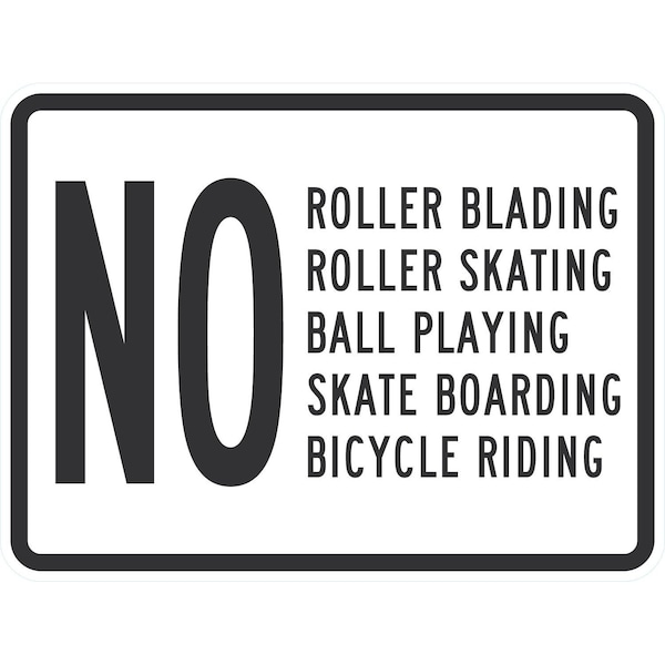 No Roller Blading Roller Skating Ball Playing Skateboarding, 24x18, Engineer Grade, White