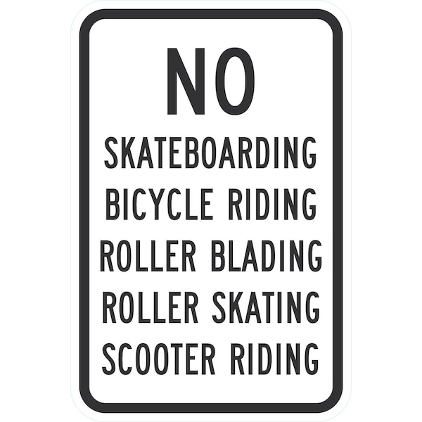 No Skateboarding, Bicycle Riding, , 12x18, Diamond Grade, White