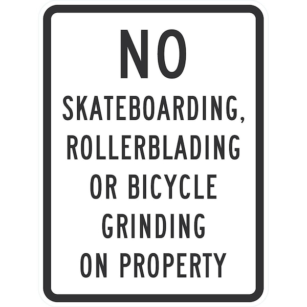 No Skateboarding, Rollerblading Or Bicycle Grinding On Prope, 18x24, Engineer Grade, White