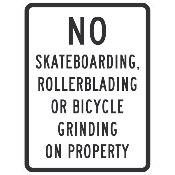 No Skateboarding, Rollerblading Or Bicycle Grinding On Prope, 18x24, Non-Reflective, White