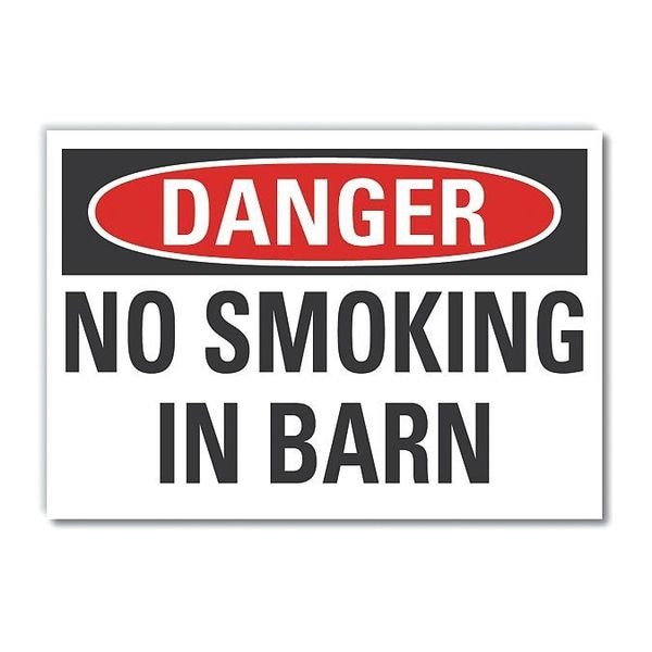 No Smoking Danger Label, Horizontal Rectangle, Number of Printed Sides 1, English, Sign Format Traditional OSHA, Sign Legend No Smoking In Barn, Sign Legend Background Color White, Sign Legend Style Text
