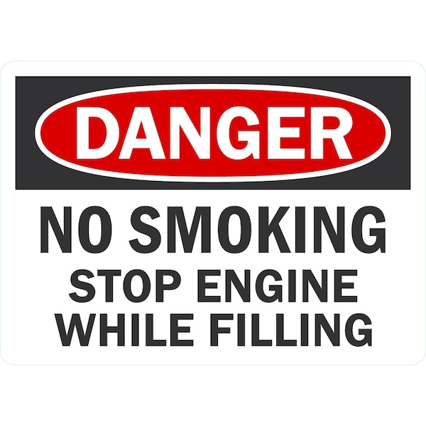 No Smoking, Stop Engine While Filling, 7x5, Engineer Grade, White