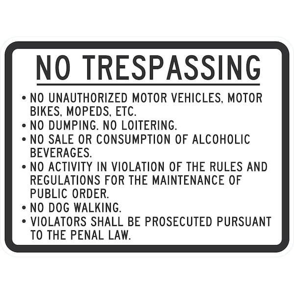 No Trespassing No Unauthorized Motor Vehicles, Motor, 24x18, Engineer Grade, White