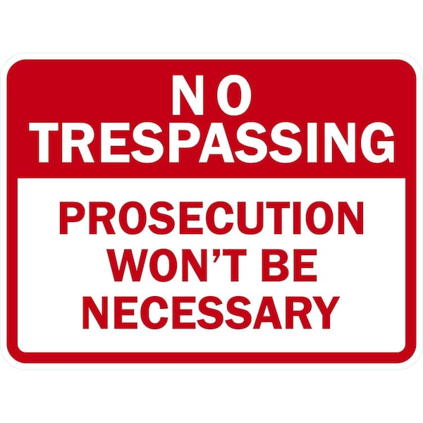 No Trespassing Prosecution Won't Be Necessary, 24x18, Non-Reflective, White