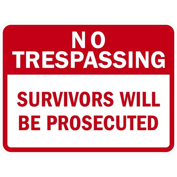 No Trespassing Survivors Will be Prosecuted, 24x18, Non-Reflective, White