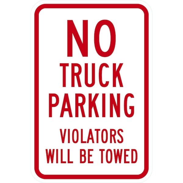 No Truck Parking, Violators Will Be Towed, 12x18, Engineer Grade, White