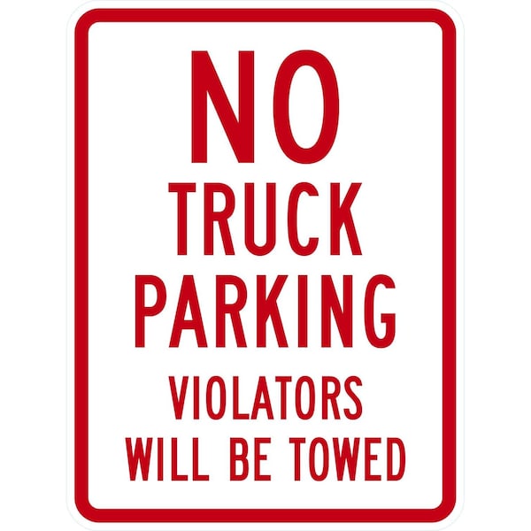 No Truck Parking Violators Will Be Towed, 18x24, Engineer Grade, White