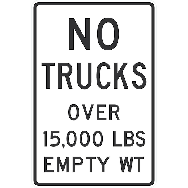 No Trucks Over 15000 Lbs, Empty Wt, 24x36, Engineer Grade, White
