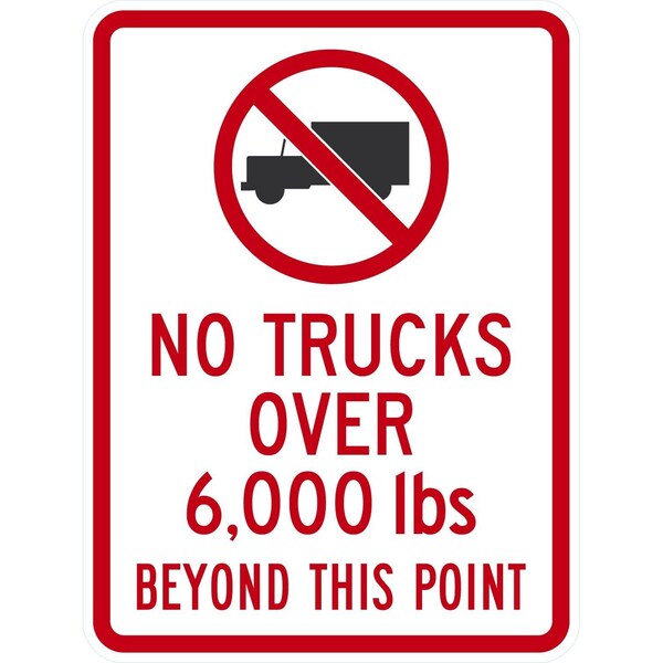 No Trucks Over 6,000 lbs Beyond This Point (w/Graphic), 18x24, Engineer Grade, White