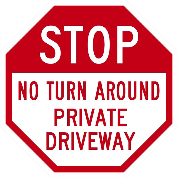 No Turn Around, Private Driveway, 24x24, Non-Reflective, White