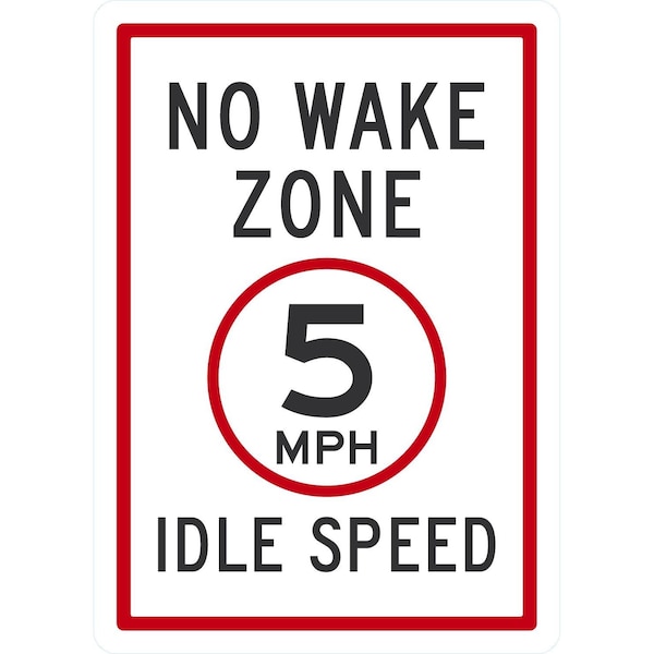 No Wake Zone, 5 MPH, Idle Speed, 10x14, Non-Reflective, White