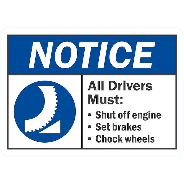 Notice All Drivers Shut Off Engine, Set Brakes and, 10x7, Non-Reflective, White