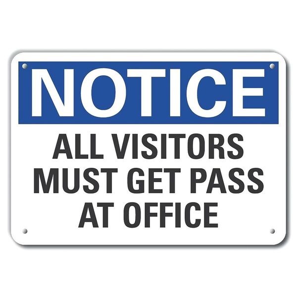 Notice Sign, Vertical Rectangle, Number of Printed Sides 1, English, Sign Format ANSI/OSHA Format, Sign Legend All Visitors Must Get Pass At Office, Sign Legend Background Color White, Sign Legend Style Text