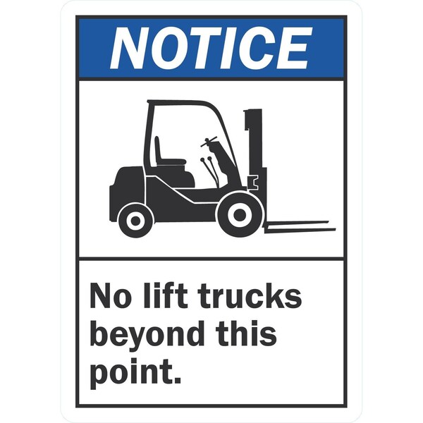 Notice (Ansi) No Lift Trucks Beyond This Point (W/Sym), 10x14, Non-Reflective, White