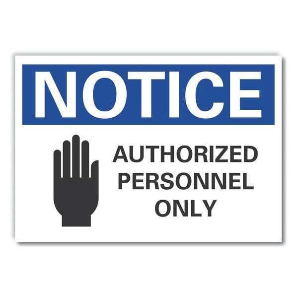 Notice Sign, Horizontal Rectangle, Number of Printed Sides 1, English, Sign Format ANSI/OSHA Format, Sign Legend Authorized Personnel Only, Sign Legend Background Color White, Sign Legend Style Symbol and Text